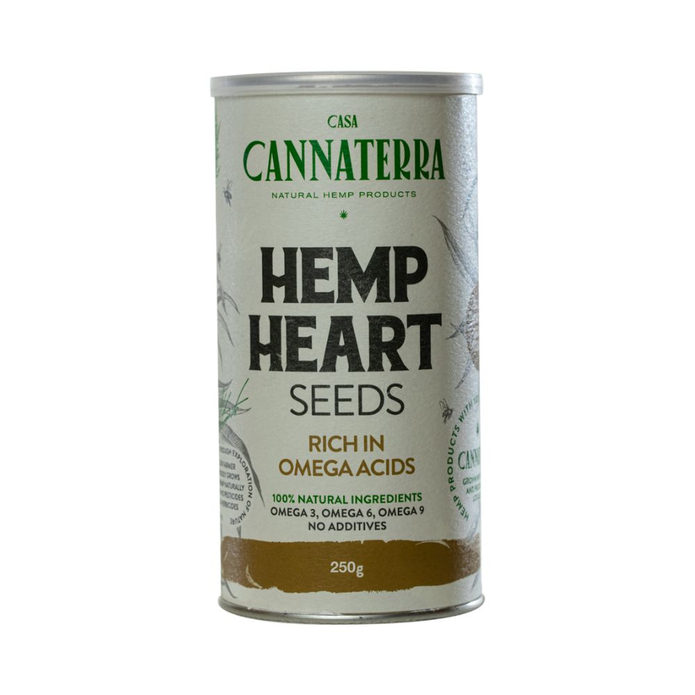 Cannaterra konopljino srce je 100% prirodan proizvod dobijen od oljuštenih semenki industrijske konoplje (Cannabis sativa L.), bogat esencijalnim masnim kiselinama, visokokvalitetnim proteinima i vlaknima.